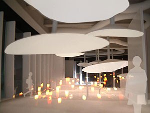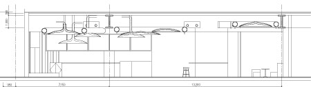 天井の高い既存空間を生かすため,以下の3点をコンセプトとしました.目線よりちょっと上で緩やかに空間を仕切る,たばこを吸う空気の感じ方を場所によって変える,いろんな天井高による居心地の異なる場所をつくる.これらを形にした,フードとして働くもうひとつの天井面を,「もくだまり」と名付けます.全体では,もくだまりは喫煙者と非喫煙者を空間的に分けないよう分散しています.床の上に散らばる家具たちは,天井の低い落ち着いた場所に集まったり,逆に高い広々とした場所を選んだりします.イベントの際は,人びとは自由に居心地のよい場所を見つけて過ごします.「もくだまり」を通して循環する空気は,局部的な置換換気の集まりですが,分散していることで,全体の空気を循環させ,人を分けない分煙空間を実現します.