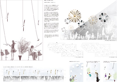 - 風が緩やかに流れる気流を可視化していること,人が自分の位置を自由に選べるのがよいと思います.テーブルが細分化されているので,場所の選択性を上げています.空調の空気,自然換気をどう関係させていくのかについて提案してほしいと思います.