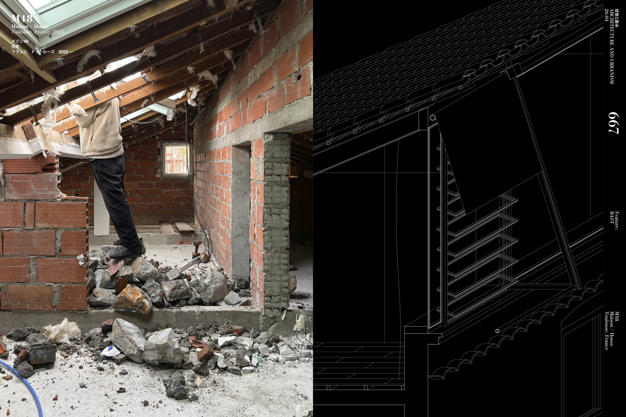 改修プロジェクトであるメゾン47やエキプマン53を含む控えめなプログラムに取り組みながら、BASTは地元のヴァナキュラーな建物の整合性を保ちつつ、新たな空間を切り拓いている。メゾン37のような新築プロジェクトは、敷地とつながるための新しい手法を提示する。本号では、紹介する18のプロジェクトについて、竣工後の建物だけでなく、人間、敷地、素材の間で絶え間ない調整が行われる建設現場のダイナミズムにも焦点を当てている。(編)